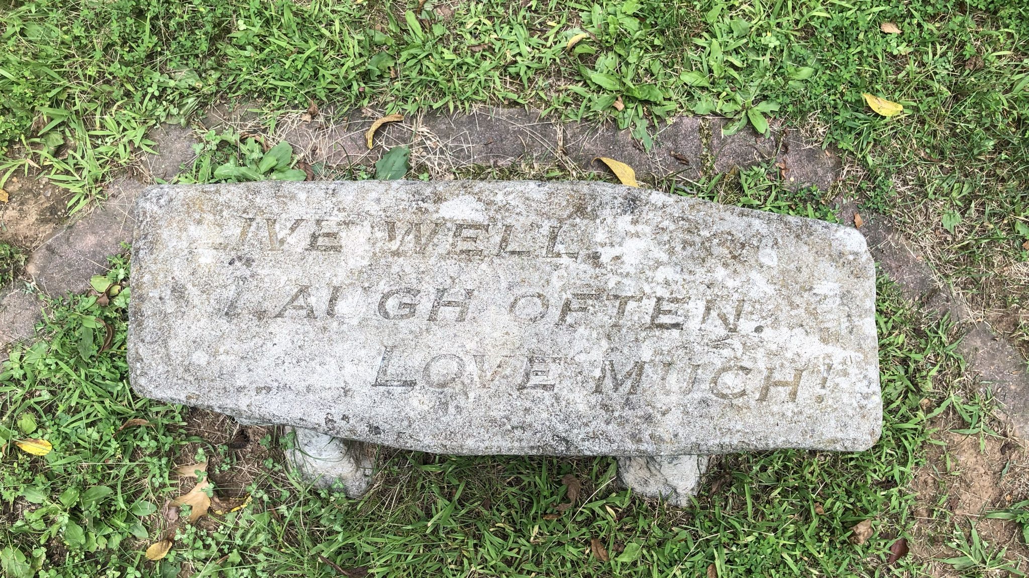 I reached the center of the labyrinth, and found a bench there that said, “LIVE WELL, LAUGH OFTEN, LOVE MUCH.’