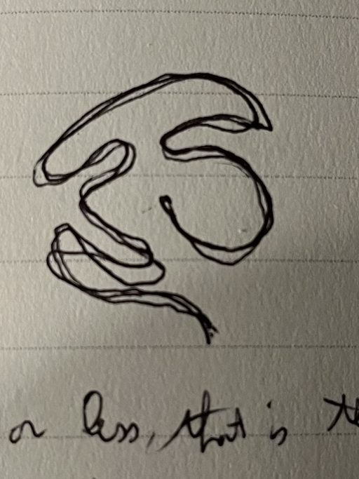 I made a quick sketch of the path this labyrinth followed. I traced over it, back and forth, a few times, and found that there was something special about doing that. I do have my stylus labyrinth at home, and I certainly used to find it helpful when I couldn’t get out to walk. So there’s one option.