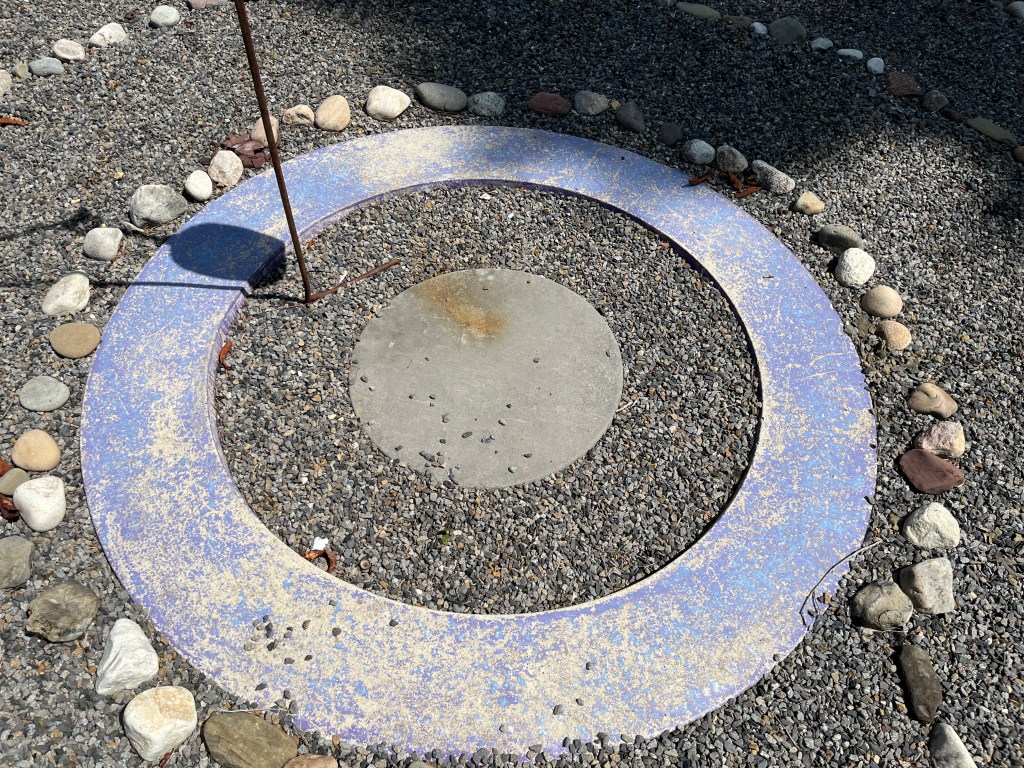 This labyrinth is an interesting one. Right in the middle of the borough of Weatherly, it sits in a person’s backyard. Someone has used a portion of their property to build a lovely labyrinth, and has graciously offered it for public use! I am so grateful for their generosity. It’s a classical 7-circuit labyrinth, with a crushed stone path and variegated stone walls.