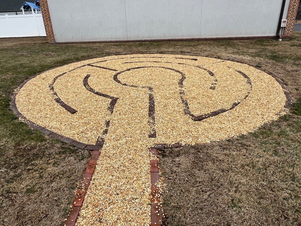 I arrived at First United Methodist Church in Phoenixville, PA for my third labyrinth of the day. The labyrinth there is very new, just built in 2025. It’s a small one, just 3-circuits, classical style. The path is small stones, and the walls are made of brick.